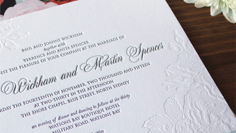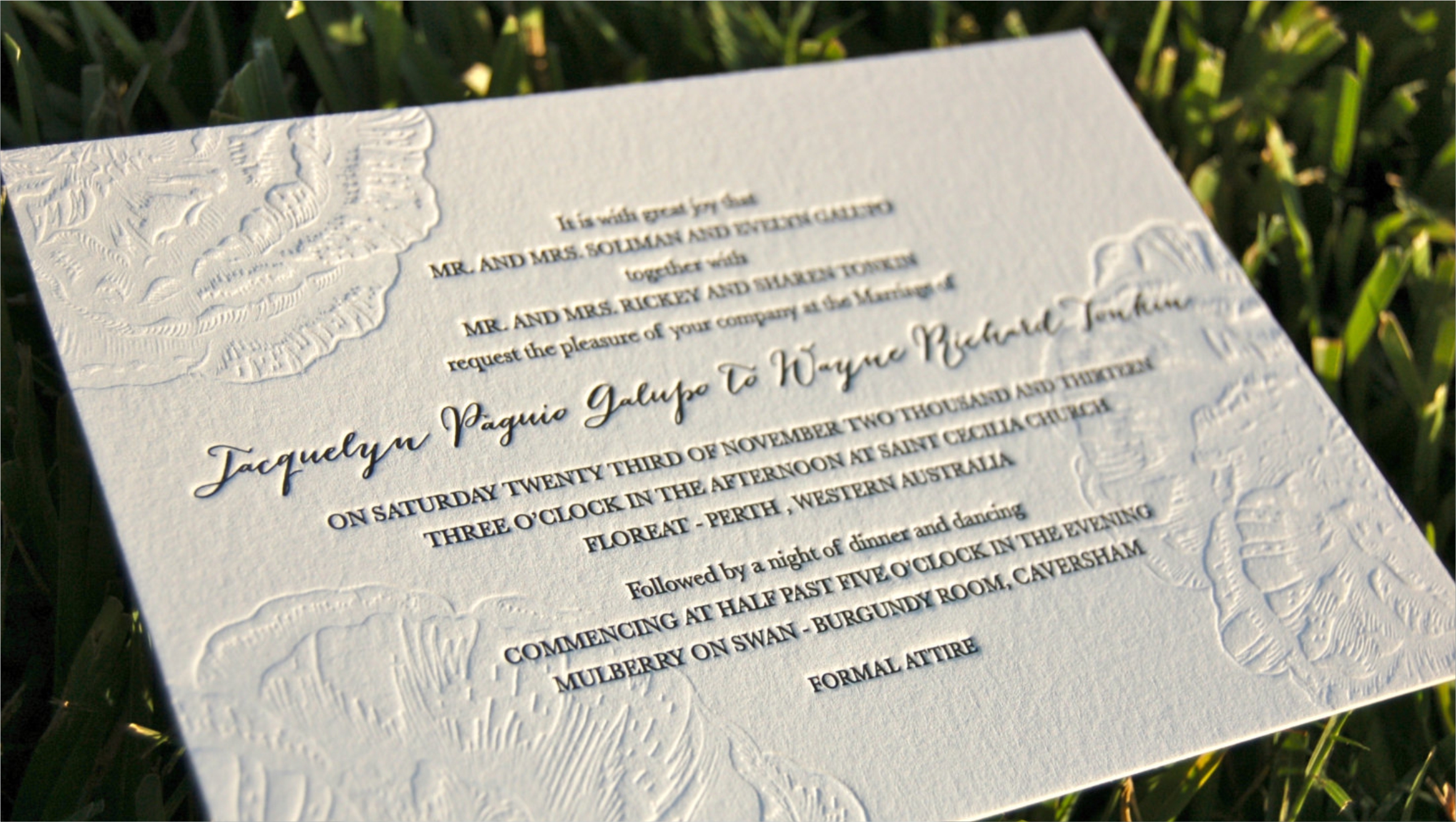 Invitatii de nunta cu Lettepress – text presat in carton.