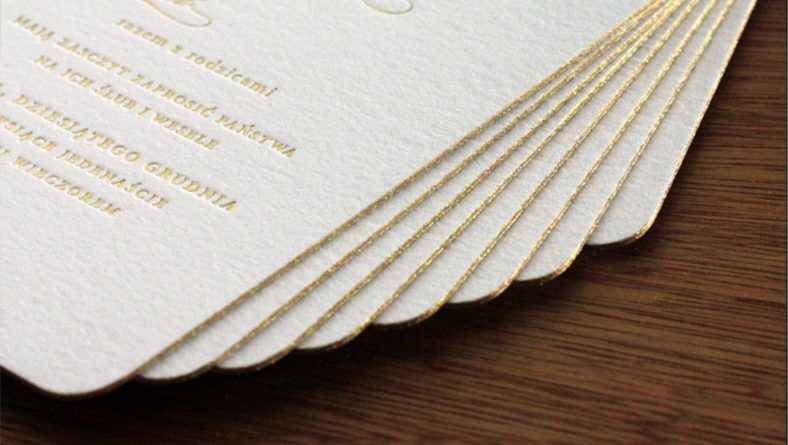 Invitatii de nunta pe carton multistrat cu cant vopsit.
