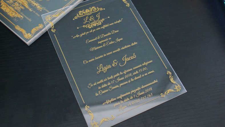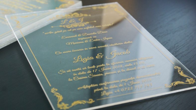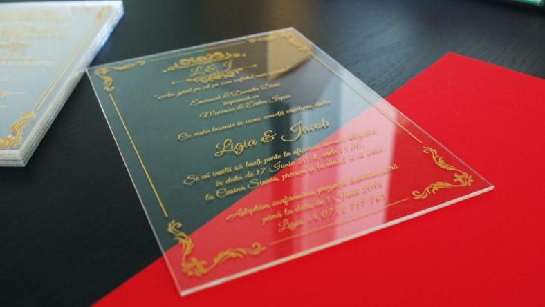 Invitatii de nunta transparente din plexiglas.