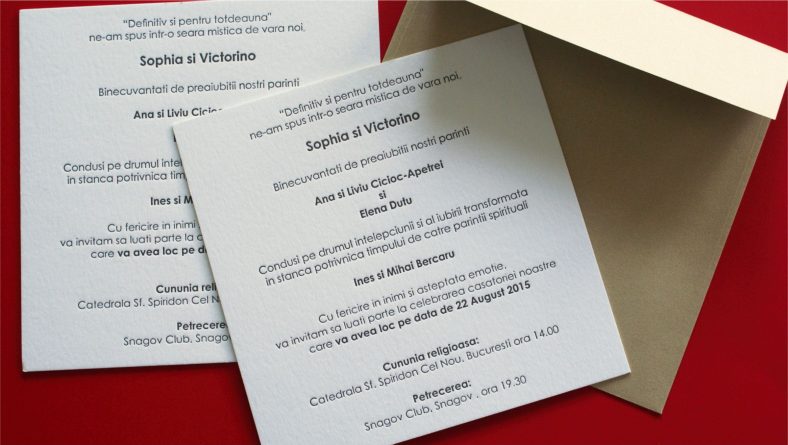 Preturi – Invitatii de nunta cu lettepress (o singura culoare) |